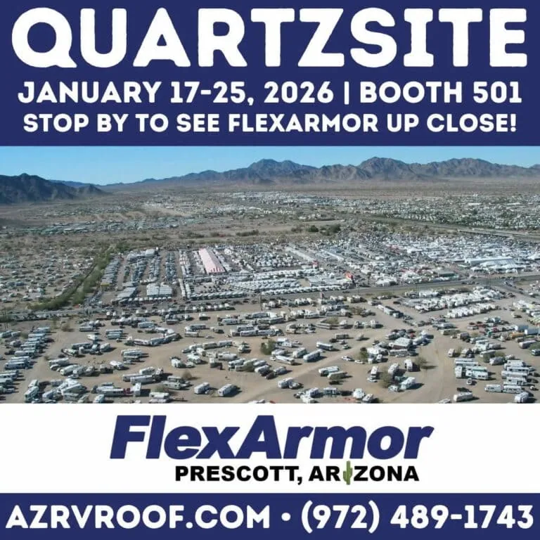 Every January something happens that is hard to believe, unless you have seen it! According to the Arizona Highway Department, as many as 750,000 to 1,000,000 people, mostly in RV’s, converge on this sleepy little desert town, located just 20 miles east of the California border on Interstate 10, for the rock, gem and mineral shows, plus numerous flea markets and the Quartzsite Sports, Vacation & RV Show. This phenomenon started over 40 years ago and is now billed as “The Largest Gathering Of RVers in the World”…